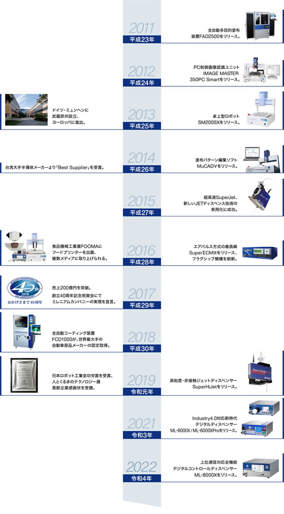 自创业以来,一贯地从事"换成把液体形状的精密控制技术®️",在液体精密制御这一深远而未知的世界中,不断开拓新天地的“MUSASHI”。在本公司独创的技术的不懈追求和长达长年的点胶技术的积累的基础上,经常提供作为高标准的涂布解决方案。MUSASHI用"价值的创造和独创的种子的构筑"作为点胶·高科技的开拓者今后也是继续挑战主题。